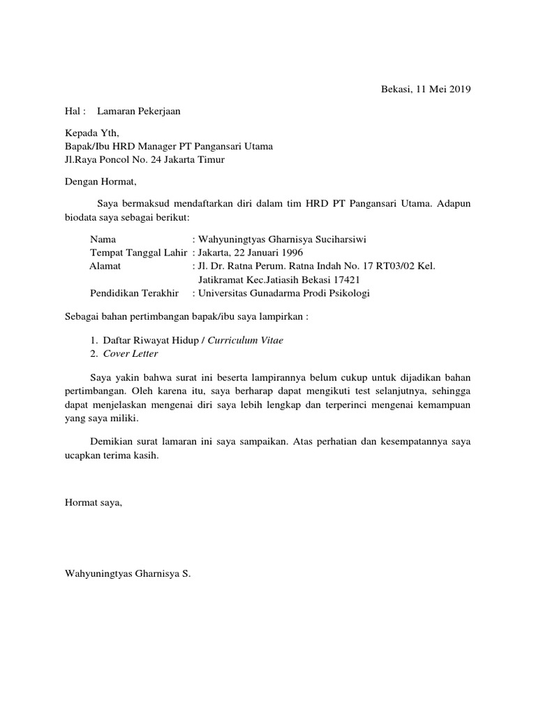 Cover Letter Untuk Hrd / Yang terhormat bpk/ibu manager hrd nama perusahaan,.